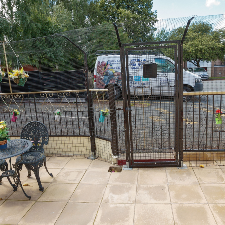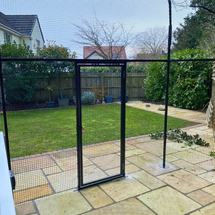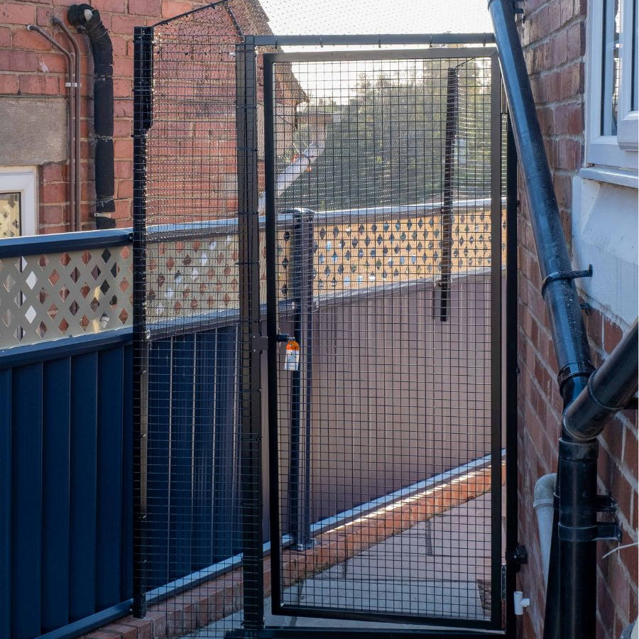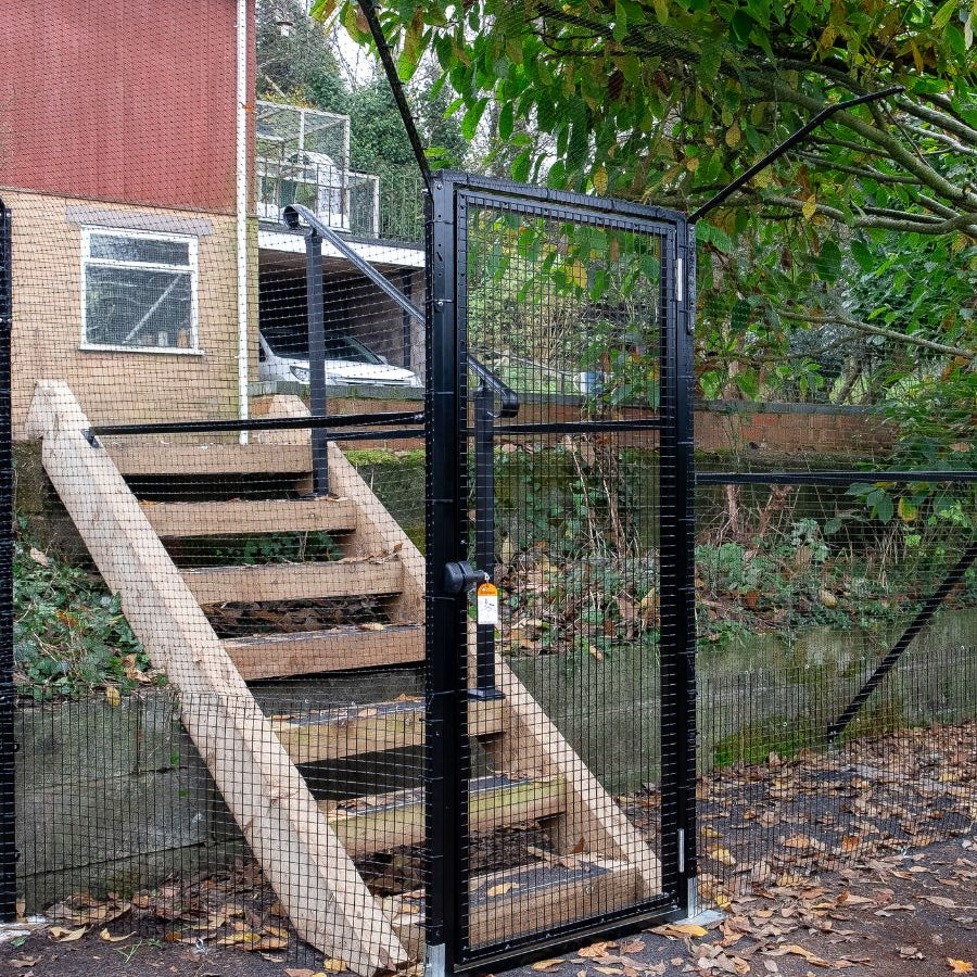 If you have a very determined cat who will linger by your feet when you entering and exiting the cat proof area, we'd recommend having an 'air-lock' gate. This involves separating two gates with a steel framed 'air-lock' or 'cat-lock' as we affectionally call it.
