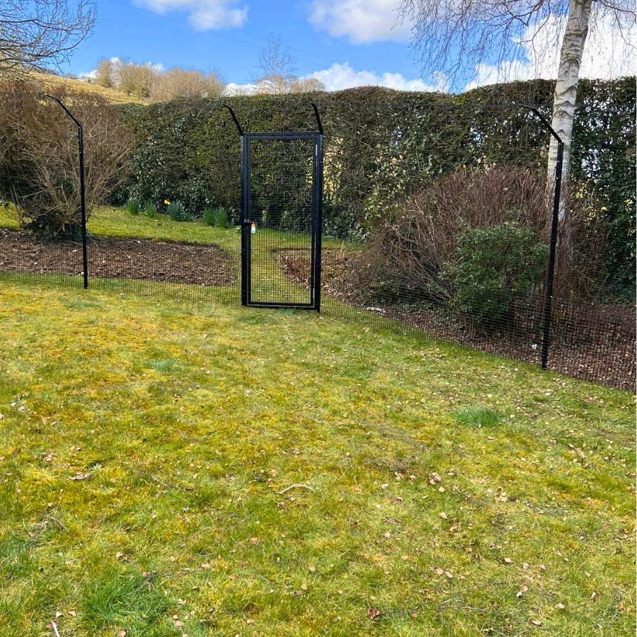 This Cat Enclosure Gate comes with 1.8m posts attached to a ground spike so that you can dig the posts into the ground securely. If you wish, you can additionally purchase cat enclosure braces.