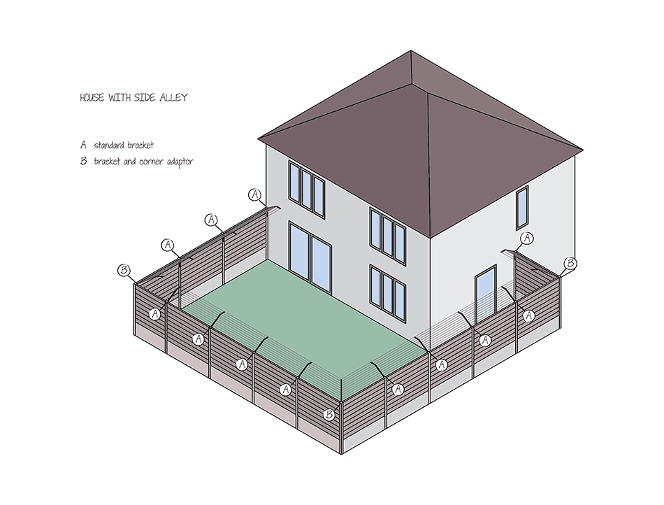 Die meisten Gärten haben Ecken, Gartenhäuser, Pergolen oder andere Elemente. Diese erfordern zusätzliche Komponenten, um vollständige Sicherheit zu gewährleisten.